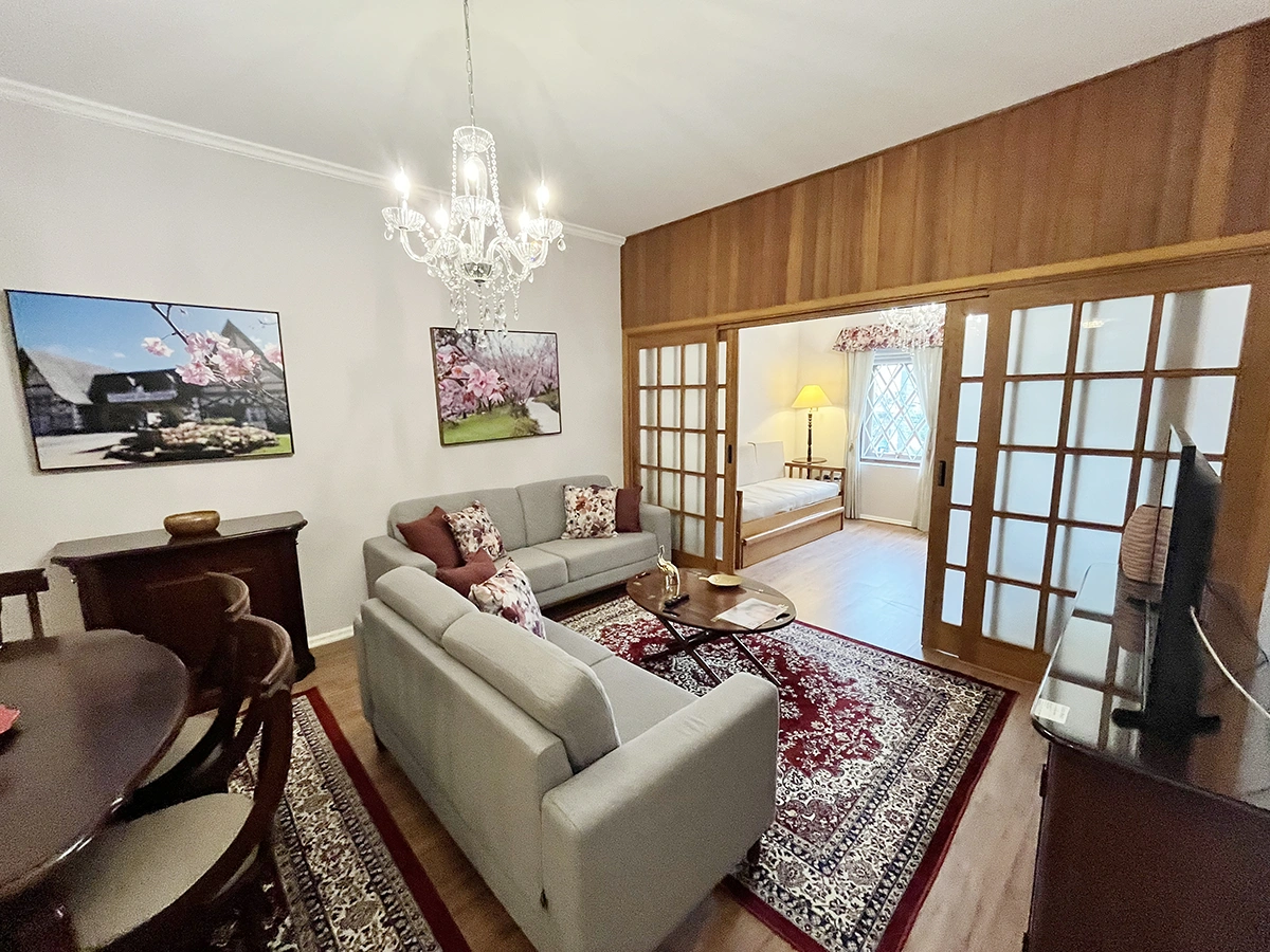 Sala de estar com 2 bicamas, TV LCD 42″, poltrona;